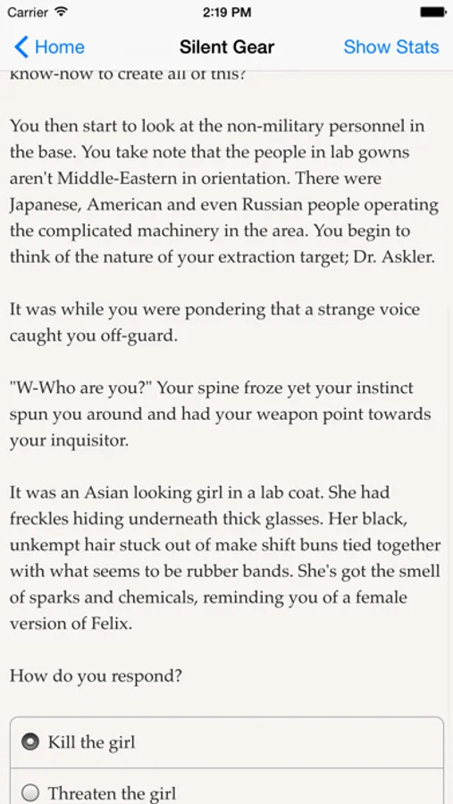 The story begins on your AROC academy graduation day. This is an interactive story with elements of romance, betrayal and survival, complete with a prologue, three Episodes and multiple endings. Your choices will determine the fate of your squad as well as your own.