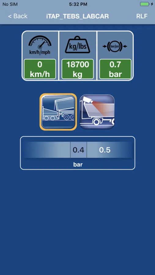 − Um sicherzugehen, dass das korrekte Steuergerät ausgewählt wurde, gibt Ihnen die S.KI Control-App grafische Anweisungen, die Betriebsbremsanlage des ausgewählten Sattelkippers durch betätigen der Fußbremse des Zugfahrzeuges mit einem bestimmten Druck zu betätigen.