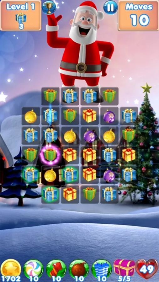 Match presents of the same color to create powerful combos and blast your way through hundreds of fun levels!