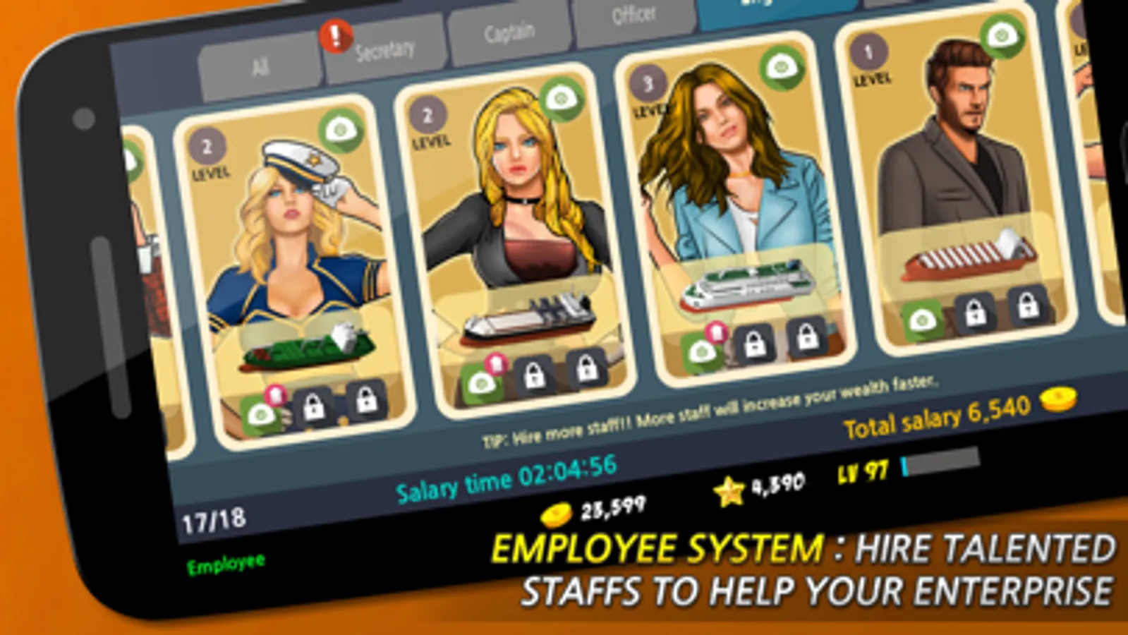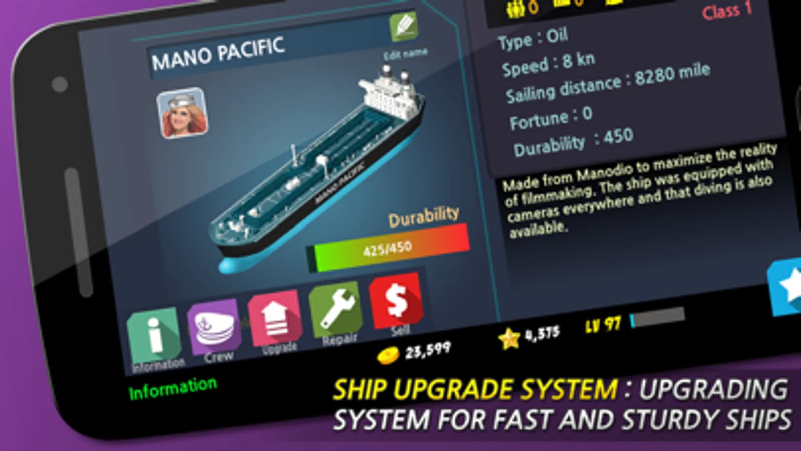 There are Blue Ocean Tycoon, ferry, container line, grain line, LNG tank vessel etc. five types of ship lines. Taking advantage of a total of various 52 units we wish you success in your business!