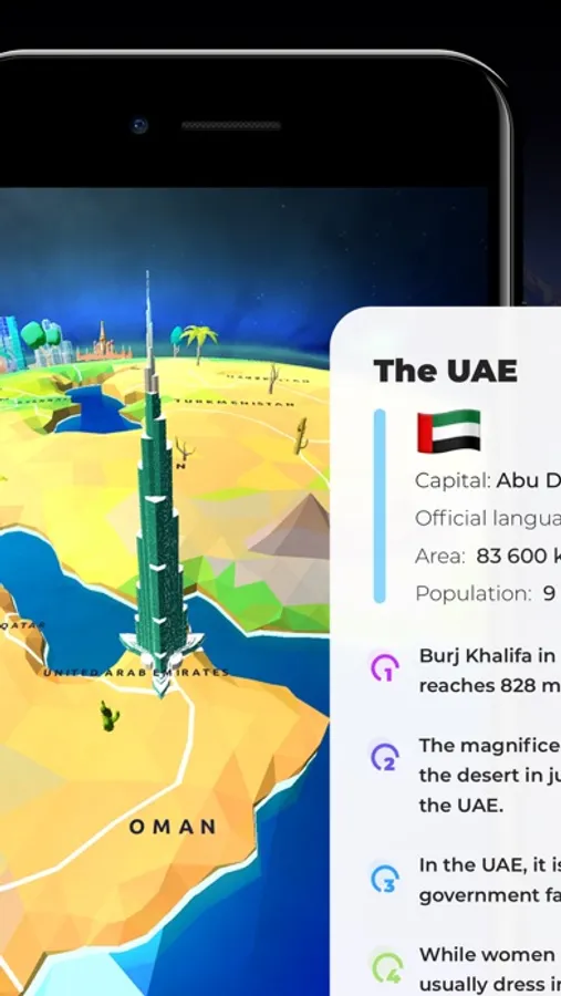 Globe Geography: World Map 3D - is a colorful educational 3D atlas for children and teens. Take a fascinating journey to every corner of our planet!