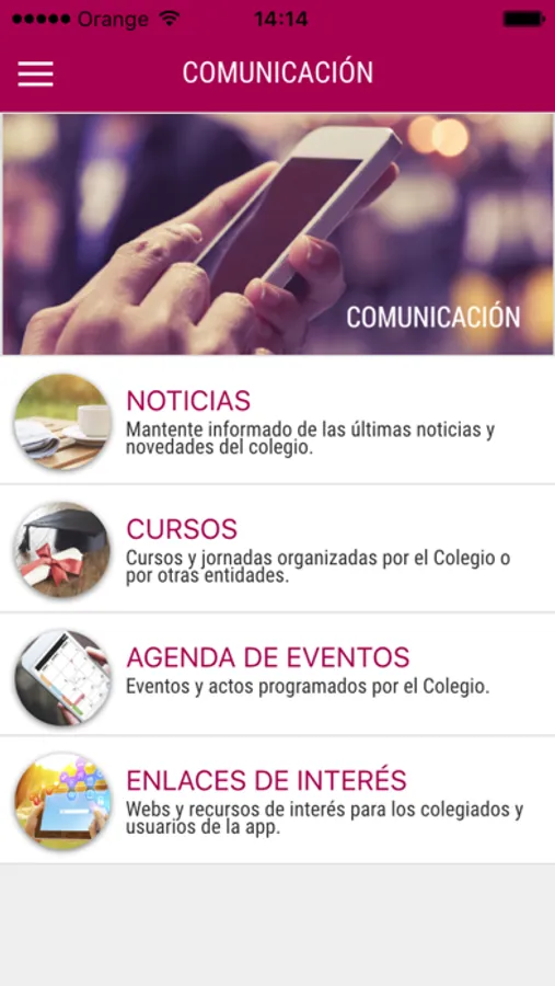 - Enlaces de interés: webs y recursos de interés para los colegiados y usuarios de la app.