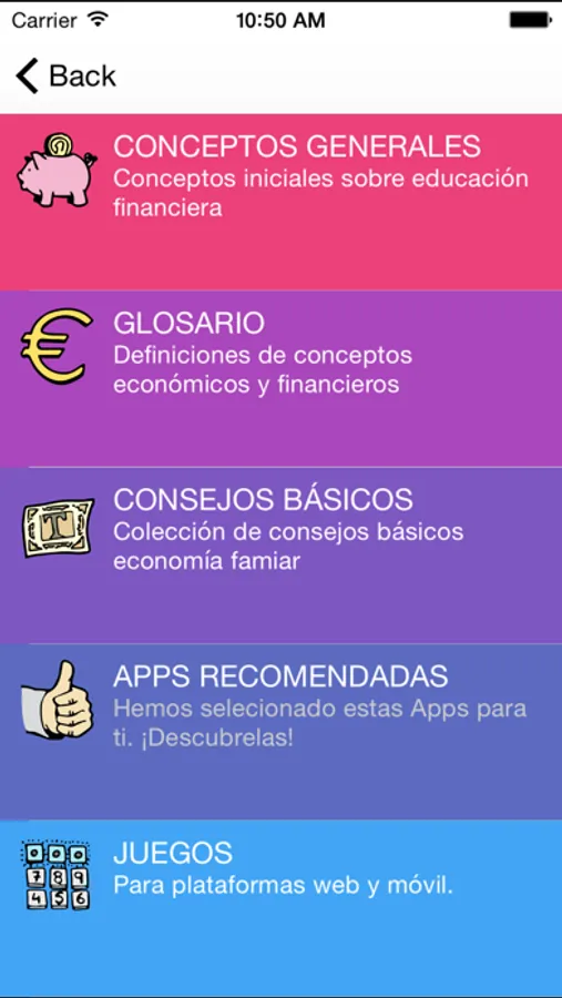 La App de Educación Financiera de CajaGRANADA Fundación nace con el propósito de hacer entender de forma fácil y amena terminologías y conceptos básicos que se utilizan a diario cuando vamos a realizar alguna gestión de carácter económico, ya que aunque la mayoría nos resultan familiares, en algunos casos no los entendemos o los confundimos.