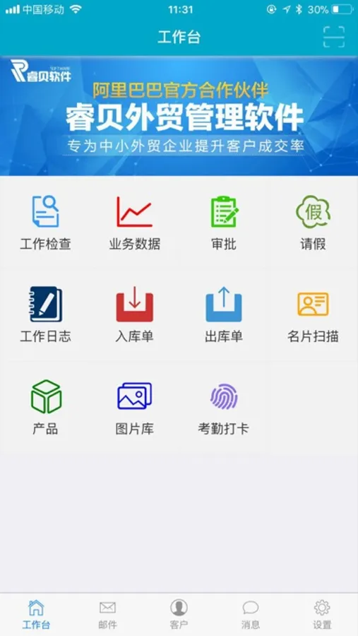 睿贝外贸软件iOS版。配合电脑版使用,功能包括邮件管理(包括发送邮件,查看邮件等)、客户管理(客户基本信息查看,联系记录查看等)、提醒功能。