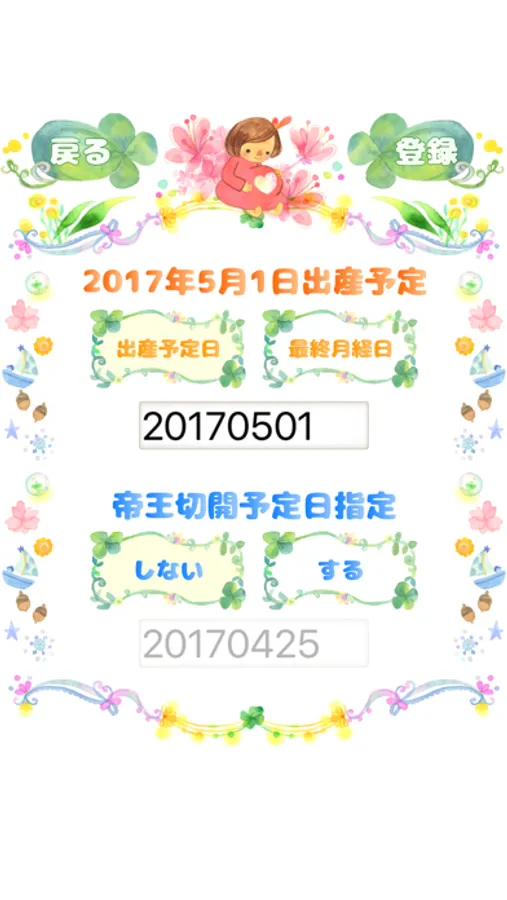出産予定日・最終月経開始日・帝王切開予定日から、妊娠週数・妊娠月数・出産予定日(または帝王切開予定日)までの日数を自動的に計算します。簡易メモカレンダー付き。