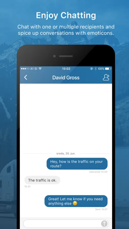 Application mobileCHAT allows CVS Mobile users to communicate between each other and their vehicles. Even if you are not sitting behind your computer you can now recieve messages on your mobile phone (you do not have to have opened application, you can recive notification by enabling this option).