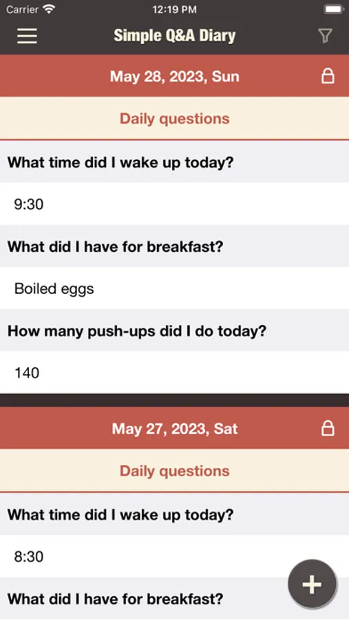 This is a journaling app in which instead of writing paragraphs of text, as you would do in any ordinary diary, you answer a bunch of questions on a daily basis. This will save you a lot of time. The list of questions is designed by you, and can be edited at any moment. Simple Q&A Dairy provides the ability to easily monitor any aspect of your life. Say, for instance, you want to lose weight. In this case you can set one of the questions to be "What did I eat today?" or "How many miles did I run today?" Having to answer the same questions every day will keep you focused on your goals. Entries in the diary can be grouped by question. The entire contents of the diary can be presented as plain text, which you can copy and save outside of the app.