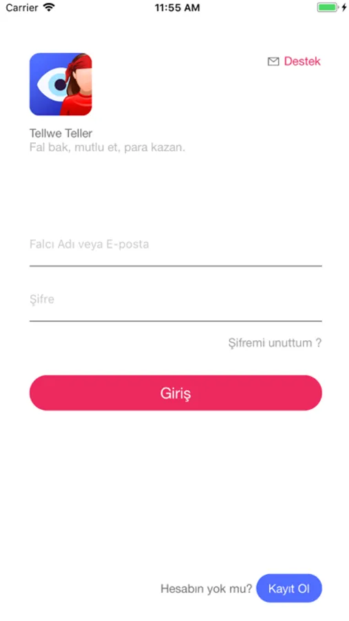 Bu uygulama tellwe.com sitesinde çalışan falcılar için yapılmış bir uygulamadır. Falcılar uygulama ile sitedeki gibi kahve falı, tarot ve sanal fincan için yazılı fal bakımı yapıp kullanıcılara gönderebilecekler.