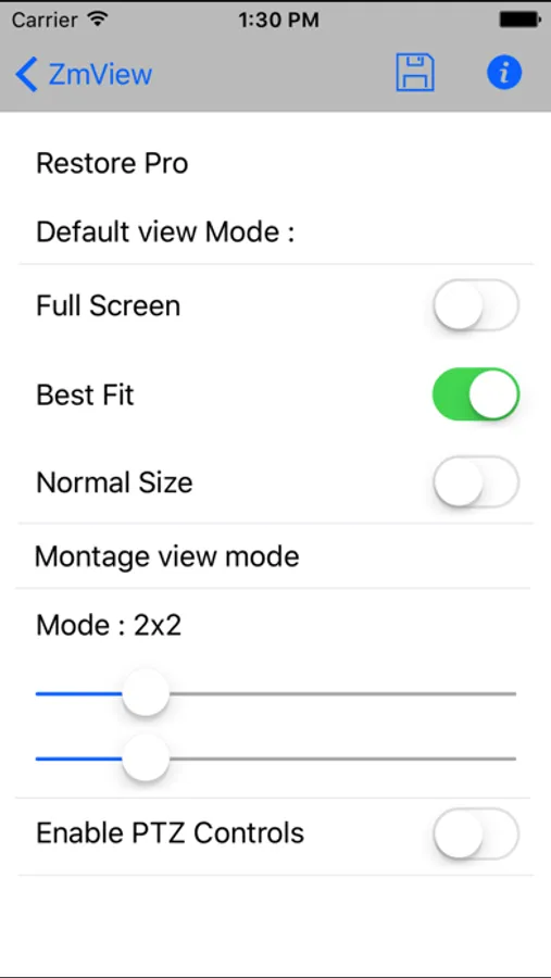 ZMView is a ZoneMinder tool for remotely control your ZoneMinder servers from iPhone devices.