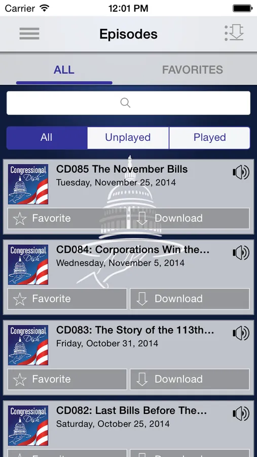 This is the most convenient way to access Congressional Dish on your phone. With this app you are always connected to the latest episodes. You can also star your favorite episodes and save them to a list so you can easily enjoy and share them over and over! This app is complete access to Congressional Dish; if you want to know what your Congress is doing, you won't want to be without it!