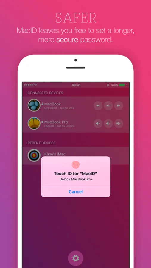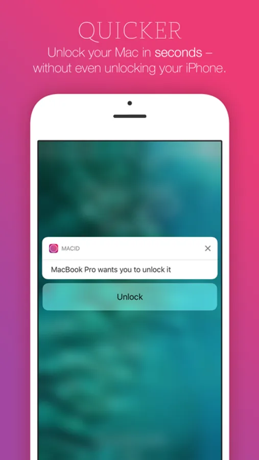 You don't even need to open the app to unlock your Mac. MacID intelligently notifies you when one of your connected Macs is woken up, which you can action directly from your iOS lock screen using either your fingerprint or passcode.