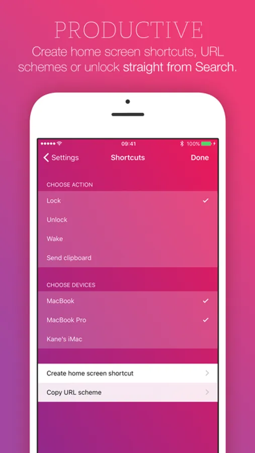 Create Home Screen shortcuts and URL schemes to lock and unlock your Mac from other apps.