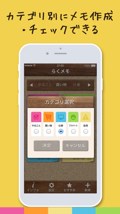 メモごとにカテゴリを割り振れるから管理もらくチン!