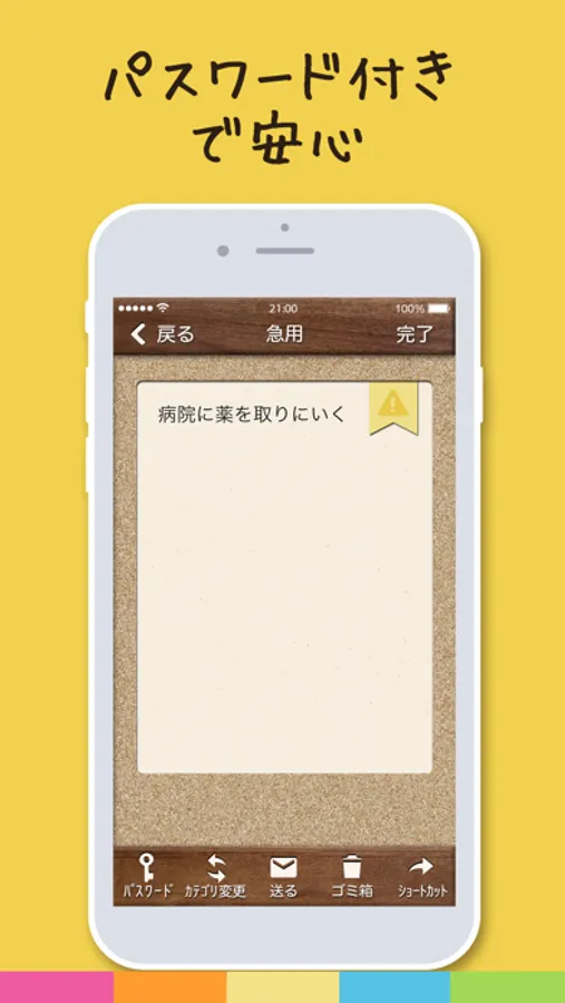 ひとつひとつにパスワードを設定できるので、重要なことをメモしても安心です。