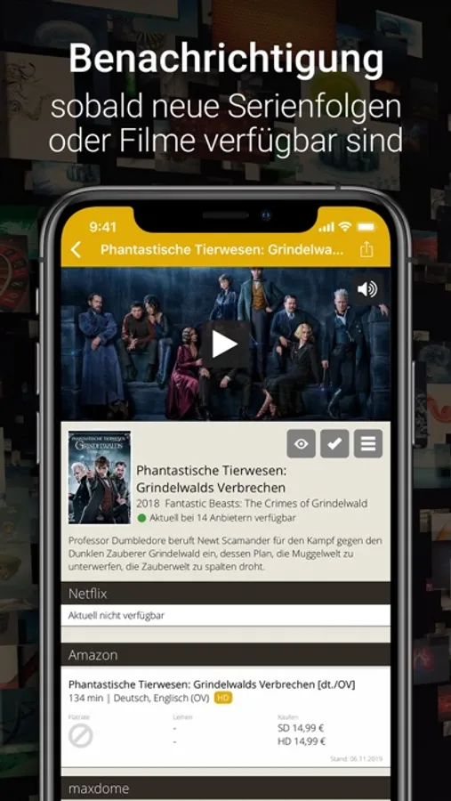 Auf Wunsch sendet dir WerStreamt.es eine Benachrichtigung, sobald ein Film oder eine Serie bei deinem Anbieter verfügbar wird oder sich etwas ändert. Bei Serien informieren wir dich zusätzlich, wenn dein Anbieter eine Episode oder ganze Staffel hinzufügt. Damit du in Zukunft nichts mehr verpasst.