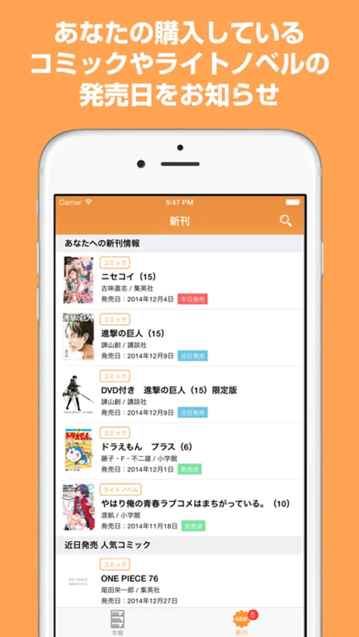 ・本棚に登録されているコミック・ライトノベルの新刊発売日をお知らせします。