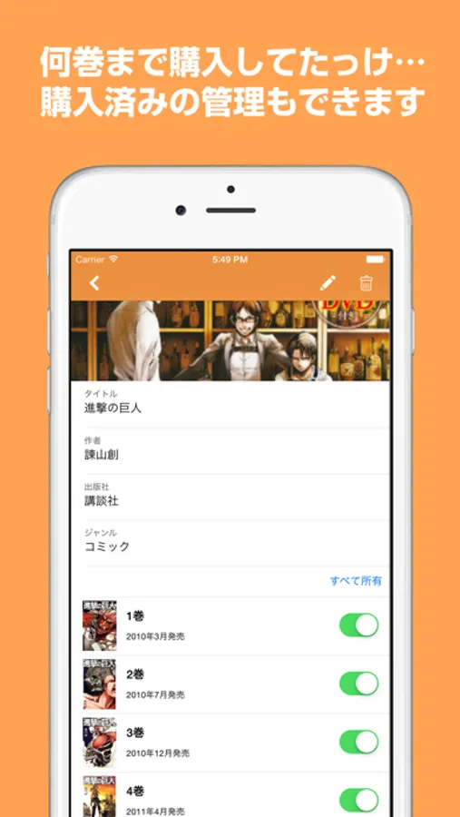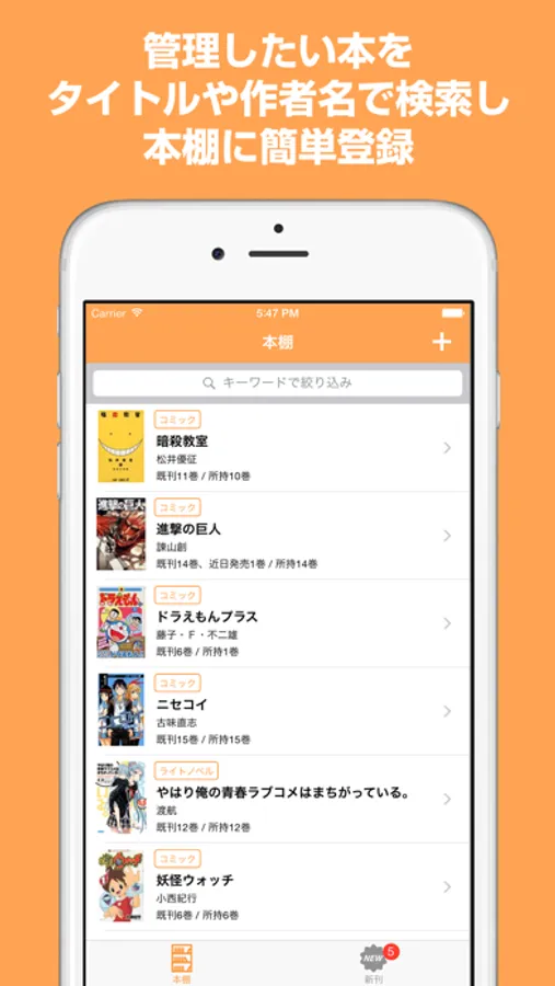 コミリリは、新刊の発売日の管理や、持っている巻数の管理など、
