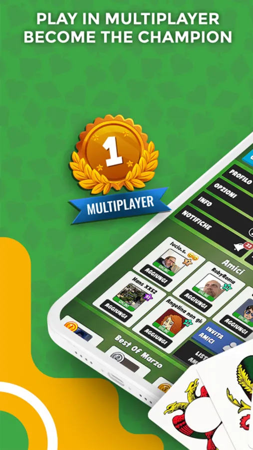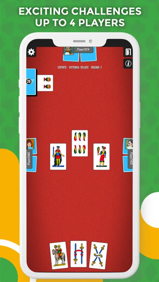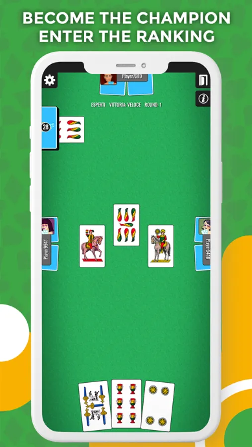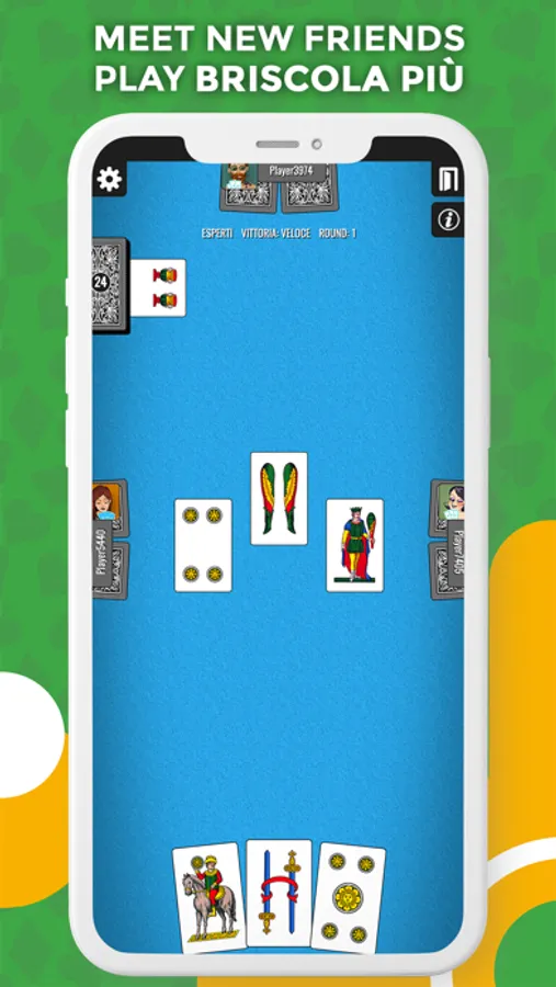 Play from your smartphone or tablet, in horizontal or vertical mode, Briscola Più will win you over with its speed, fluidity and precision. You will feel as if you´re playing with your friends! Start playing directly without even registering or log in via Facebook®, Google® or email to play the social and competitive matches!