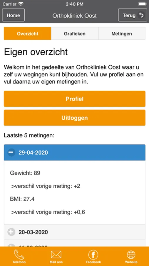 Voor onze cliënten is de PRO gewichtscontrole ontwikkeld, waar je altijd je laatste controle terug vindt, maar je kunt ook zelf het gewicht en de uiteindelijke resultaten bijhouden.