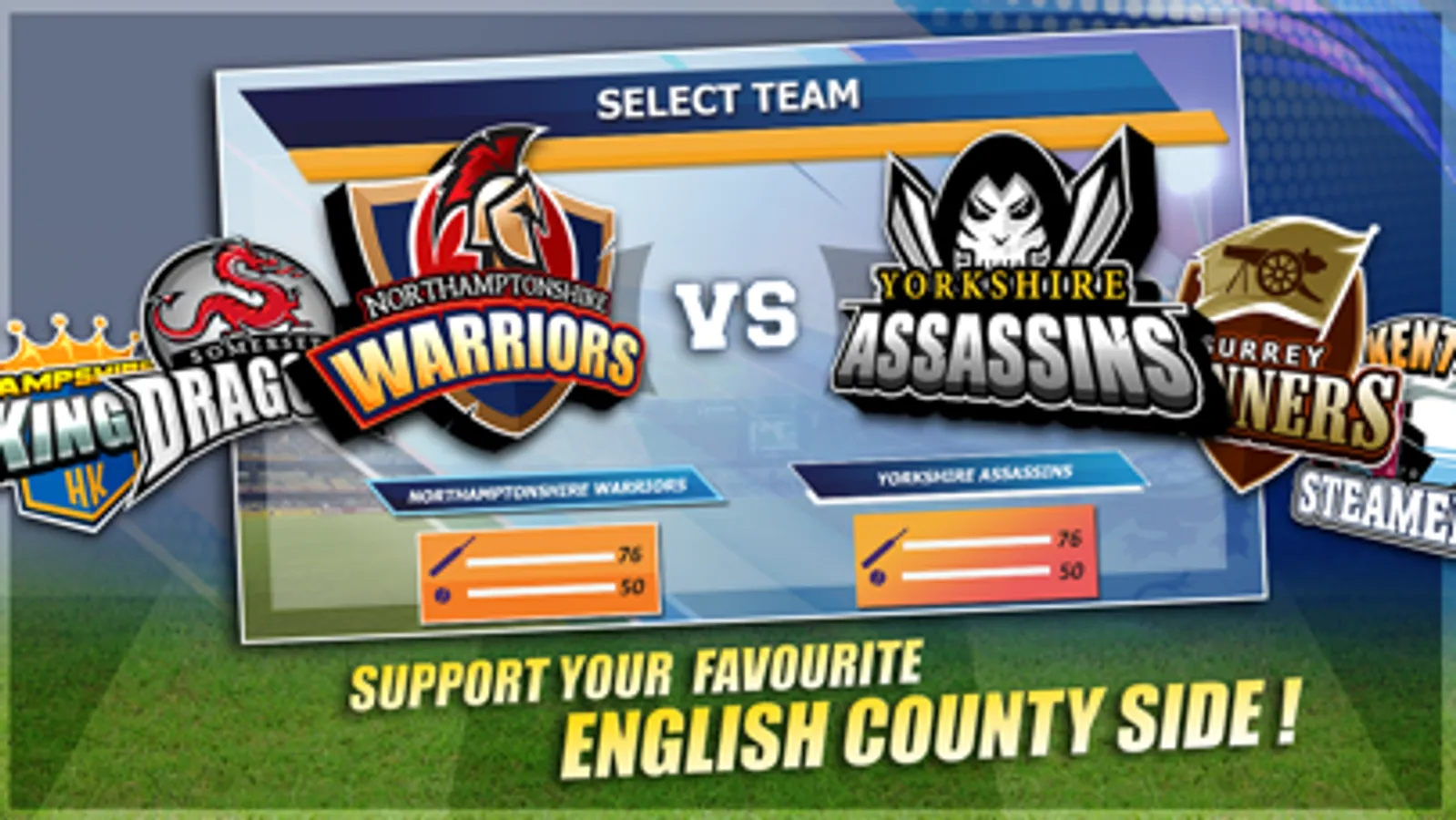 Guide your favorite English 20 20 team to the top and win the biggest cricketing domestic crown in Britain.