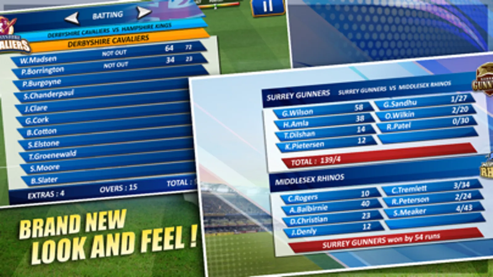 Full user control on team selection, batting and bowling order, 15 fields placements to choose from and much more