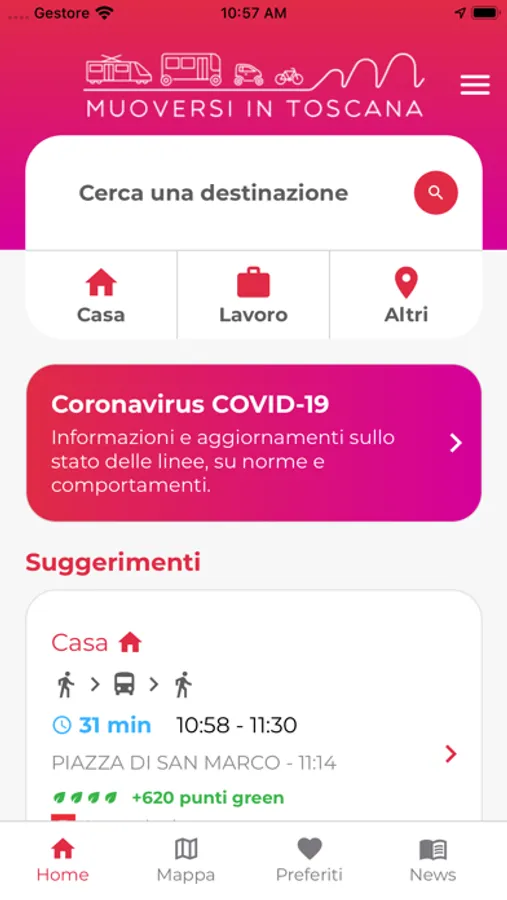 • accedere con i pulsanti rapido al tuo percorso casa-lavoro;