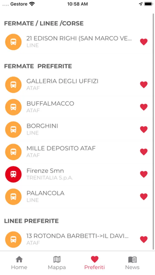 • registrarti e memorizzare fermate, stazioni, linee e corse di utilizzo più frequente, ricevendo se lo desideri informazioni specifiche e in tempo reale;