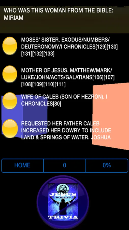 JesusWhat? 5000+ Biblical Trivia is amazing! JesusWhat? 5000+ Biblical Game has reached number 1 in App Annie's trivia games (paid category). JesusWhat? features over 5,000 bible and religious trivia questions about Jesus, women of the bible, famous cities and events of the bible, Catholic popes and special dates, Roman numbers, animals of the bible, Jesus miracles, Jesus parables and more! JesusWhat? 5000+'s developers 21stCenturyArtists.com are the creators of some of the “best...games released ever” according to critics at Pocket Gamer. JesusWhat? 5000+ Biblical Trivia game is an astonishing follow-up winner for this trivia gaming company.