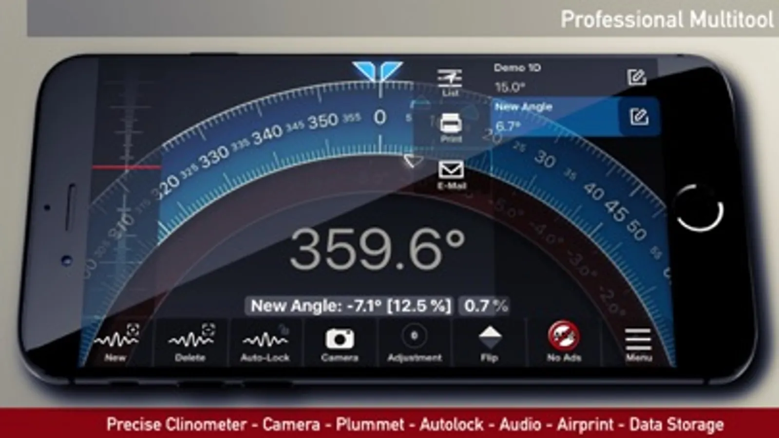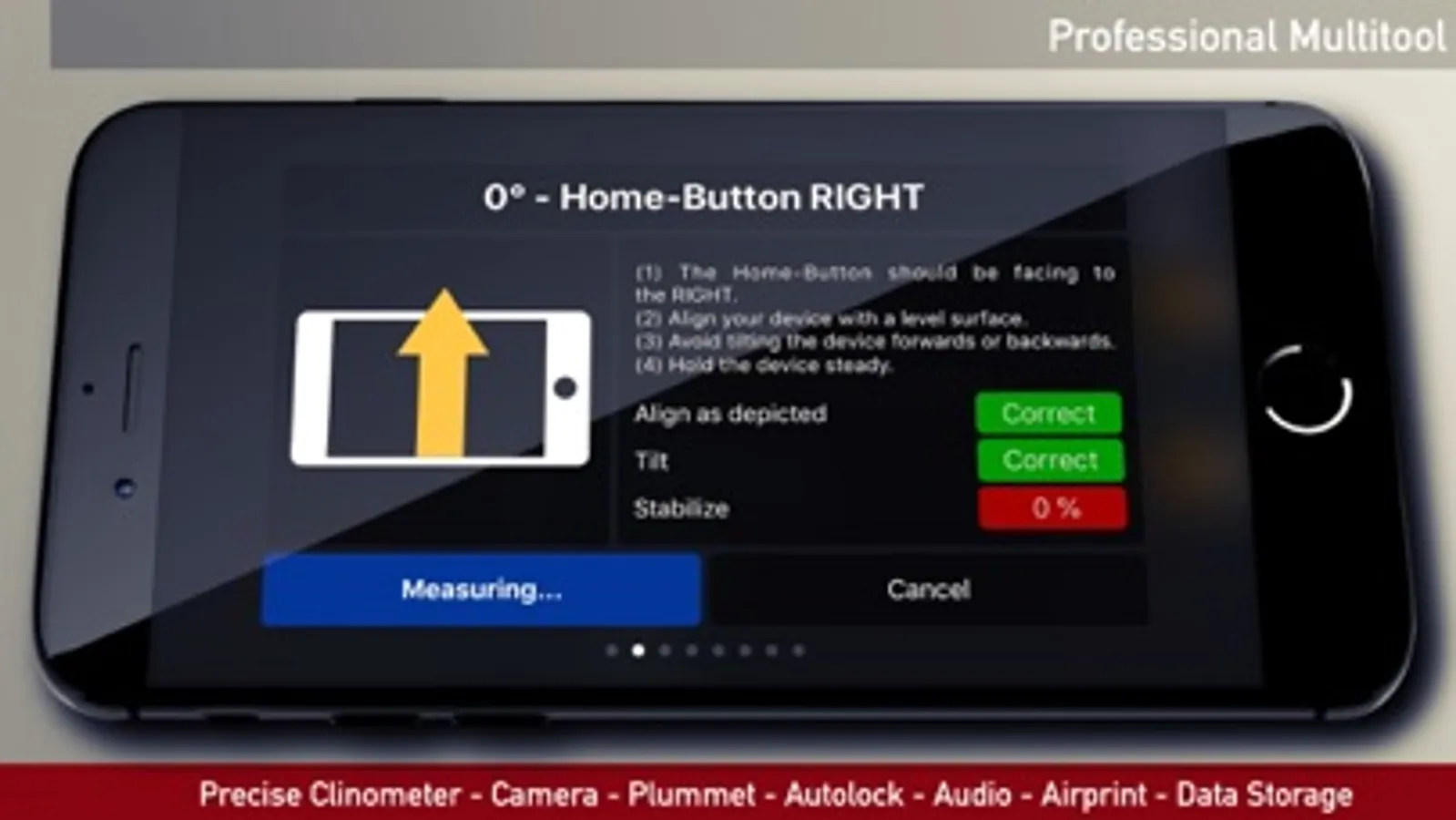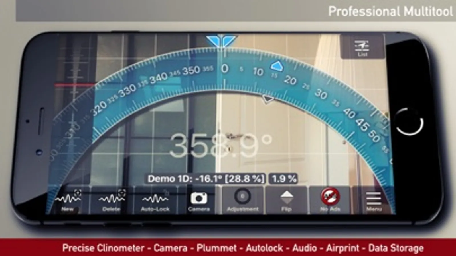 Measure angles and slopes: The most precise clinometer and digital bubble Level in your pocket. Including Flashlight + Compass + Ruler + Camera measuring - All in one handy app.