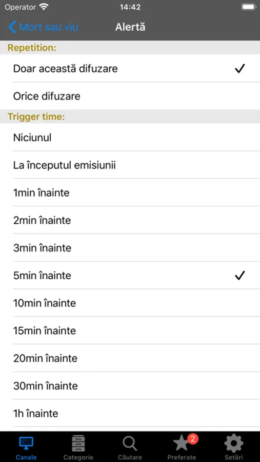 • Ability to receive an alert before the show is on air: up to 2 hours before the show