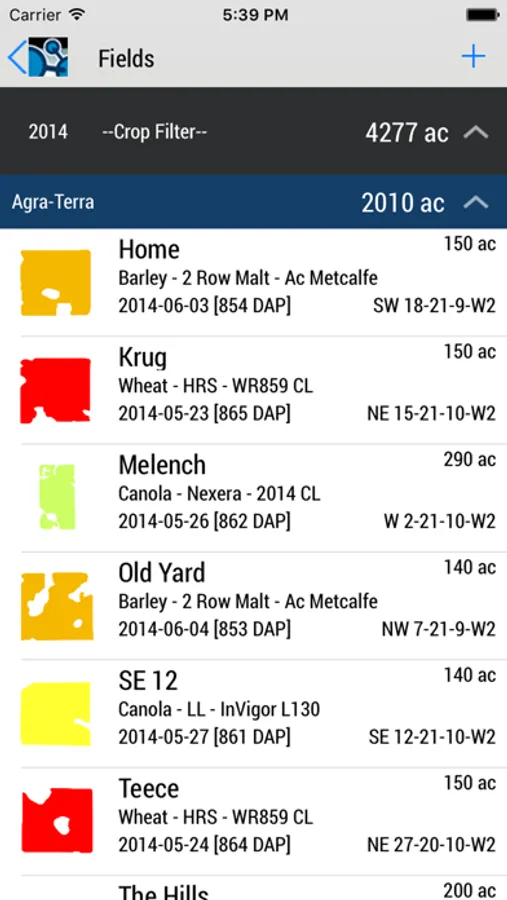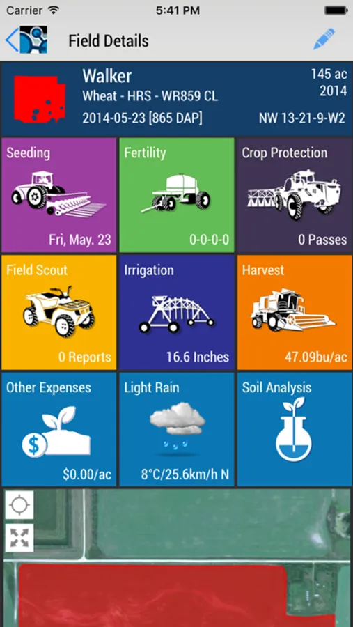 - Enter details on tillage, planting, spraying, harvest, etc.