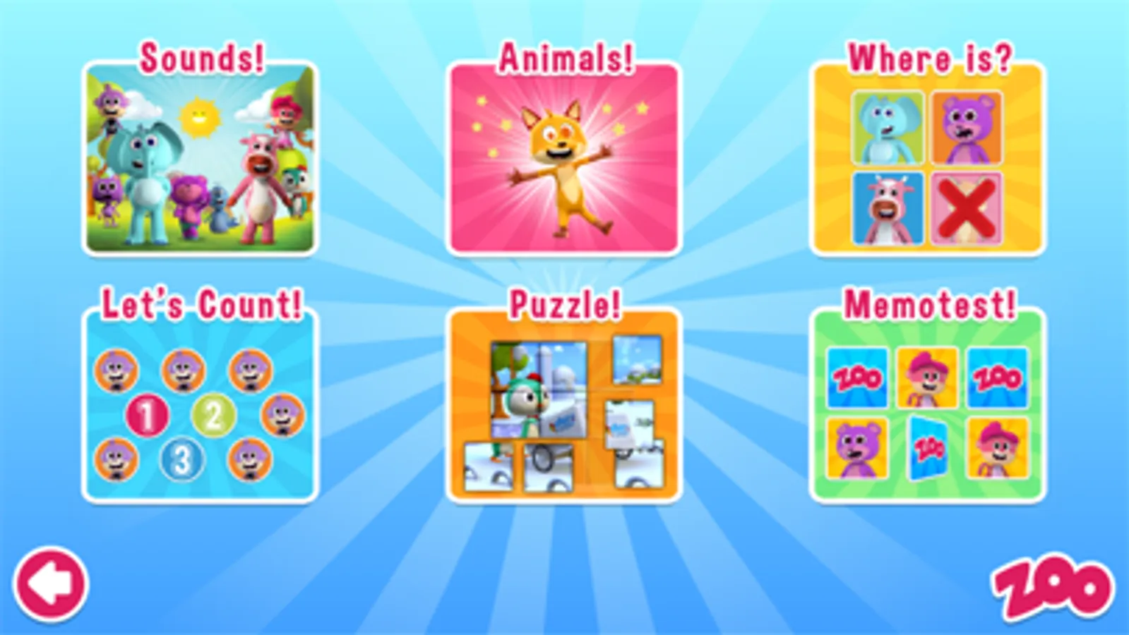 The Zoo Games is a funny and teaching application based on the characters of the famous series known as The Zoo Songs. This application is great for children aged between 0 and 5, it has six games with different levels of difficulty, where they can learn while they are having fun like recognizing the characters, counting numbers, building puzzles and training their memory.