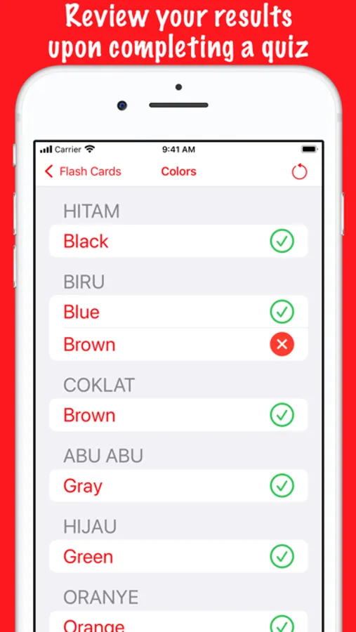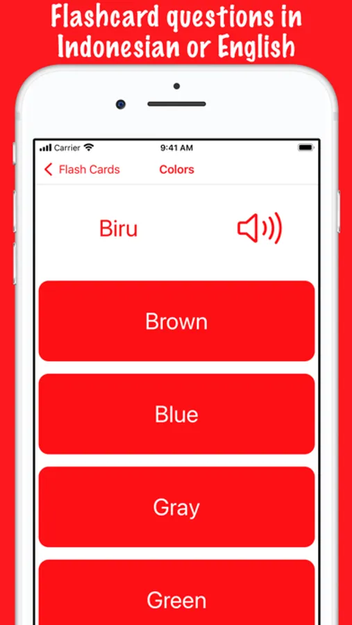 - A flash card tutorial where you can be prompted in Indonesian or English to match the word to the correct choice