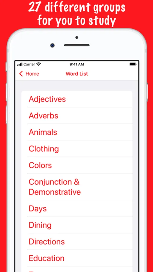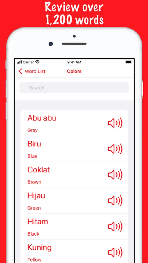 - A comprehensive word list that allows you to search through by English and Indonesian words grouped by sections