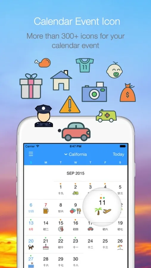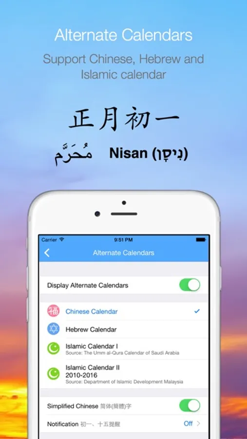 * Need an alternative calendar, we supported it too. You can add Chinese, Hebrew and Islamic into the default calendar.
