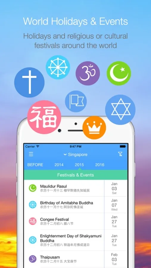 If you are just looking for a simple way to keep track of important dates in your personal and professional life, or to see what upcoming festivals, holidays are happening around your region than this handy, user friendly app is right for you!
