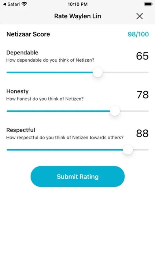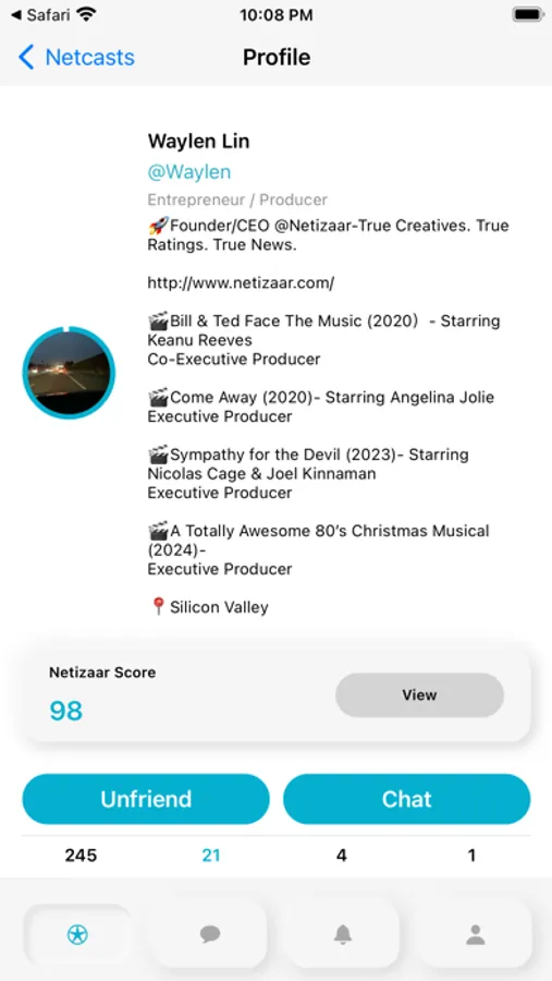 Rate your friends’ professionalism based on Dependable, Honesty, and Respectful. This generates the Netizaar score visible in the blue ring on every profile video bubble. The Netizaar Score feature in each profile indicates the users’ professionalism which are rated anonymously by their friends who followed each others on Netizaar!