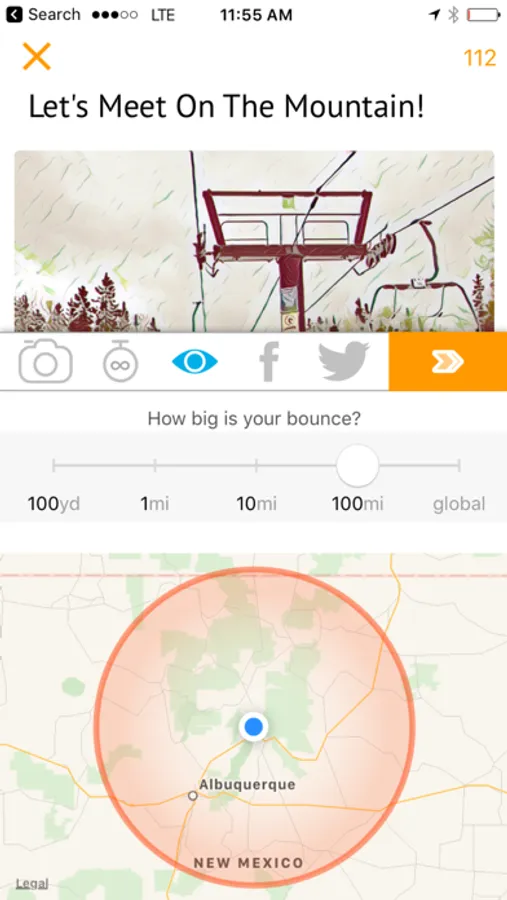 BounceChat - Share Here! Find local pics, groups, links and events. BounceChat is a simple way to capture and share moments nearby & around the world. Share a photo and message to people within range and view cool places, people, groups and events near your location. Bounce 100 yards at a concert, 1 mile at an event, 10 miles to your community, 100 miles to the region & infinity mode to Bounce all Users! Share your Bounces to people just in your neighborhood or your whole city, you decide the range and how long they last.