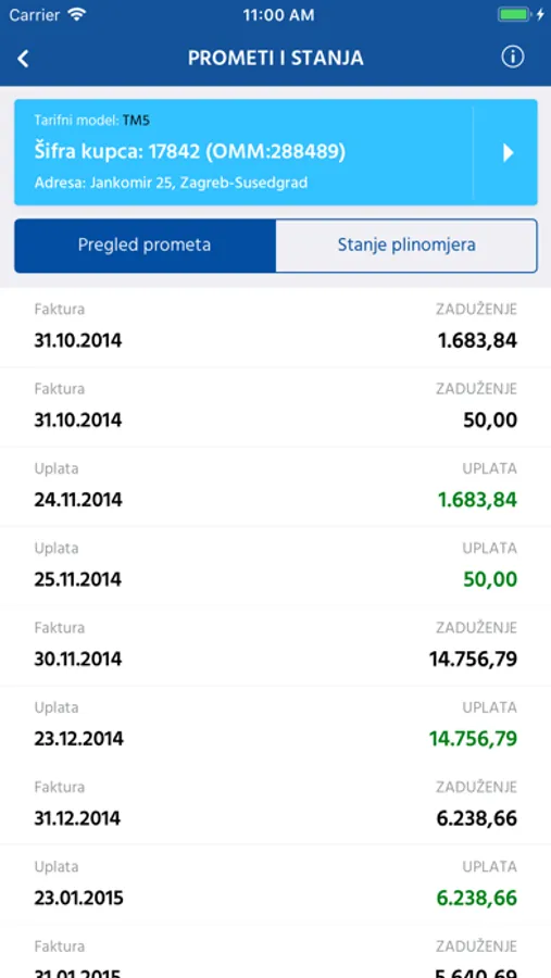 · Preuzimanje obračuna potrošnje plina (računa) i akontacijskih rata