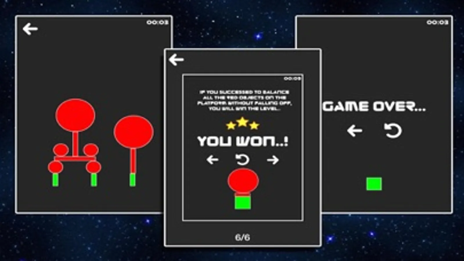 5) Balance all shapes until count down ends, and win each level.