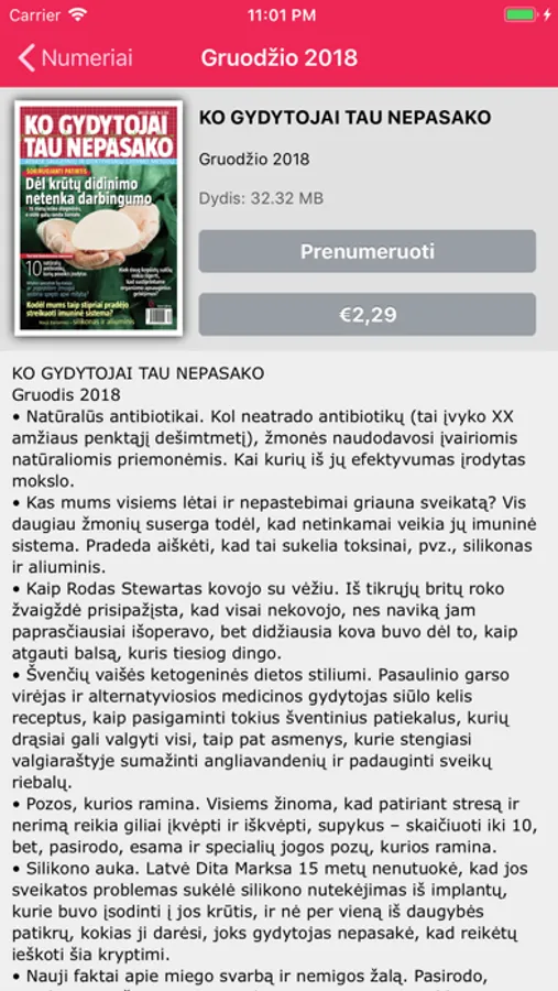 Vieno taikomosios programos žurnalo numerio kaina – 1,99EUR