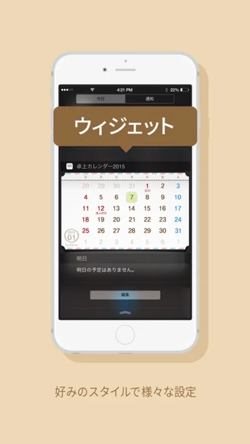 ** 「卓上カレンダー2015」ウィジェットの設定方法 (iOS8) **