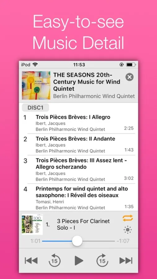 Detailed information is displayed for each track, so you can quickly find music you want to listen.