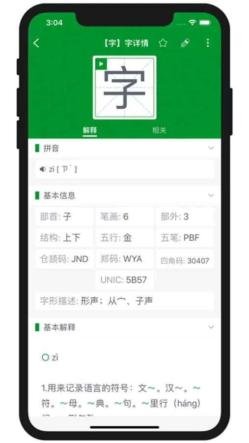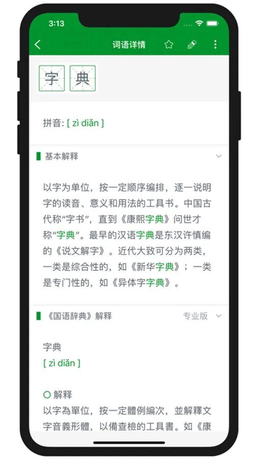 • 字典:拼音、部首、笔画、结构、五笔等基本信息,汉字基本解释和详细解释;