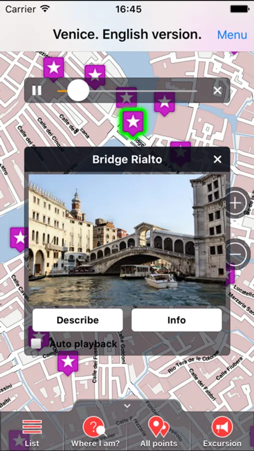 ● VENICE AUDIO-GUIDE All recordings were prepared in a professional recording studio. You can listen to it at the same time to see the sights. You won’t waste your time and ruin your eyesight due to reading text on the phone.
