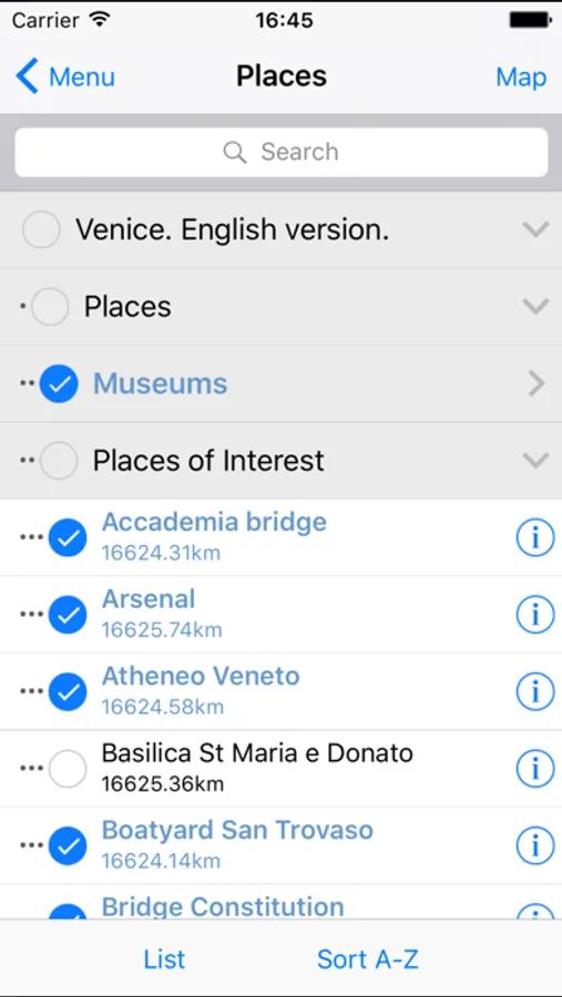 ● WALKING ON THE VENICE Venice is definitely a city-size museum. We suggest you to walk through the city, just enjoying the views and the history. You should know, that not all of places of interests are included in excursions – for example islands, which worth noticing too, and some other monuments. Create your own plan of walk by choosing the places which you want to visit in catalogue and they will automatically appear on the map. You can also remove all other objects away from the map.