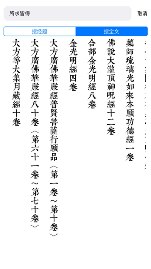 搜索佛经时,可以根据标题搜索,也可以根据内容搜索。