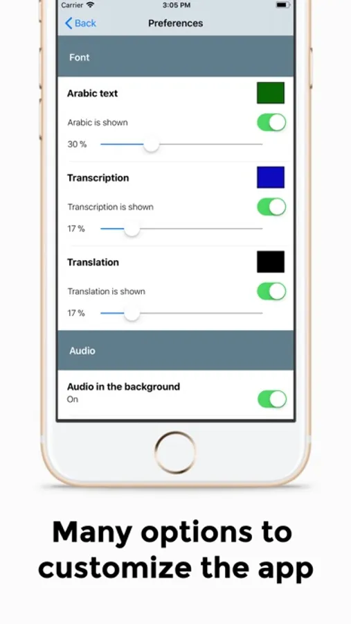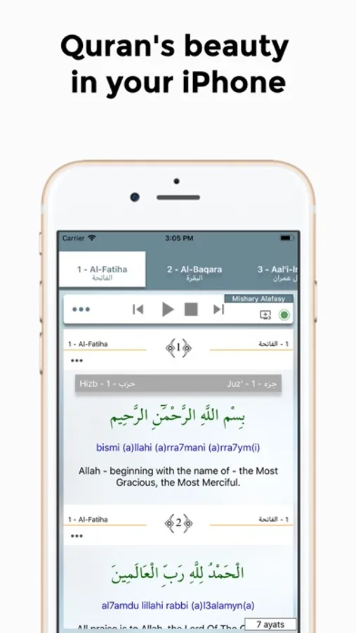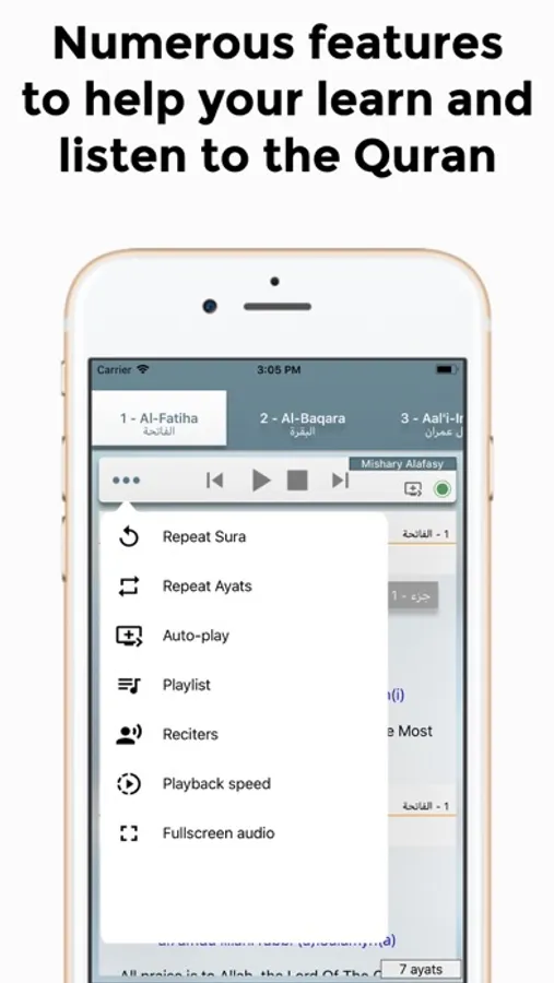 • Avoid having to take out your phone so as to go to the next Surah (سورة - which is a chapter) thanks to the AutoPlay feature