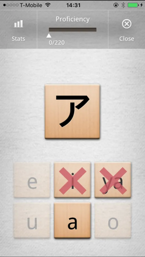 Kana mind is not a simple matching or flash card game. It uses an intelligent memorization algorithm focused on teaching character combinations, and then measuring the player's success in matching each combination. As you progress through the game and learn the alphabets, the symbols become more and more complex.