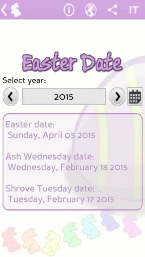 The app calculate also the date of the ash Wednesday and the date of the shrove Tuesday.